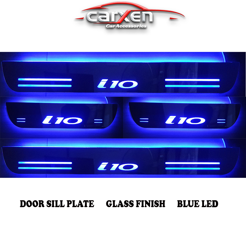 Car Door Foot Step Led Sill Plate With Mirror Finish for compatible with i10 (Set of 4PCS, Blue) Door Sill Plate Door Sill Plate
