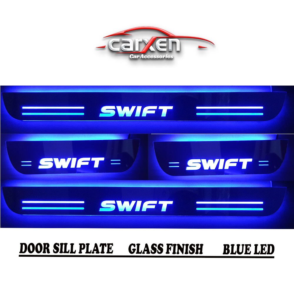 Car Door Foot Step Led Sill Plate With Mirror Finish for compatible with Maruti Swift 2015-18 (Set of 4PCS, Blue) Door Sill Plate Door Sill Plate