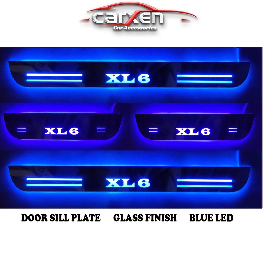 Car Door Foot Step Led Sill Plate With Mirror Finish for compatible with Maruti Suzuki XL6 (Set of 4PCS, Blue) Door Sill Plate Door Sill Plate