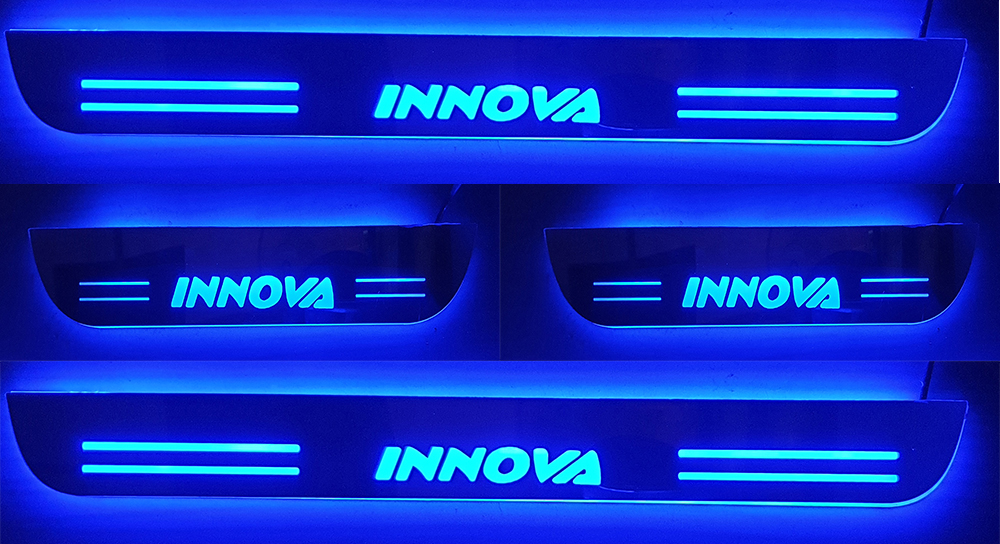 -: • Set of 4 Pcs. 2 pcs FRONT L/R with Blue LED and 2 pcs REAR L/R with Blue LED. • Install them by connecting it to dome light, blue light will automatically light up when door is opened. • Silver Chrome Finish. • 100% Brand New. • Easy and quick installation, comes with automotive adhesive tape. • Door sill plates helps protect the interior door sills from scratches. • Gives your car a new elegant look.