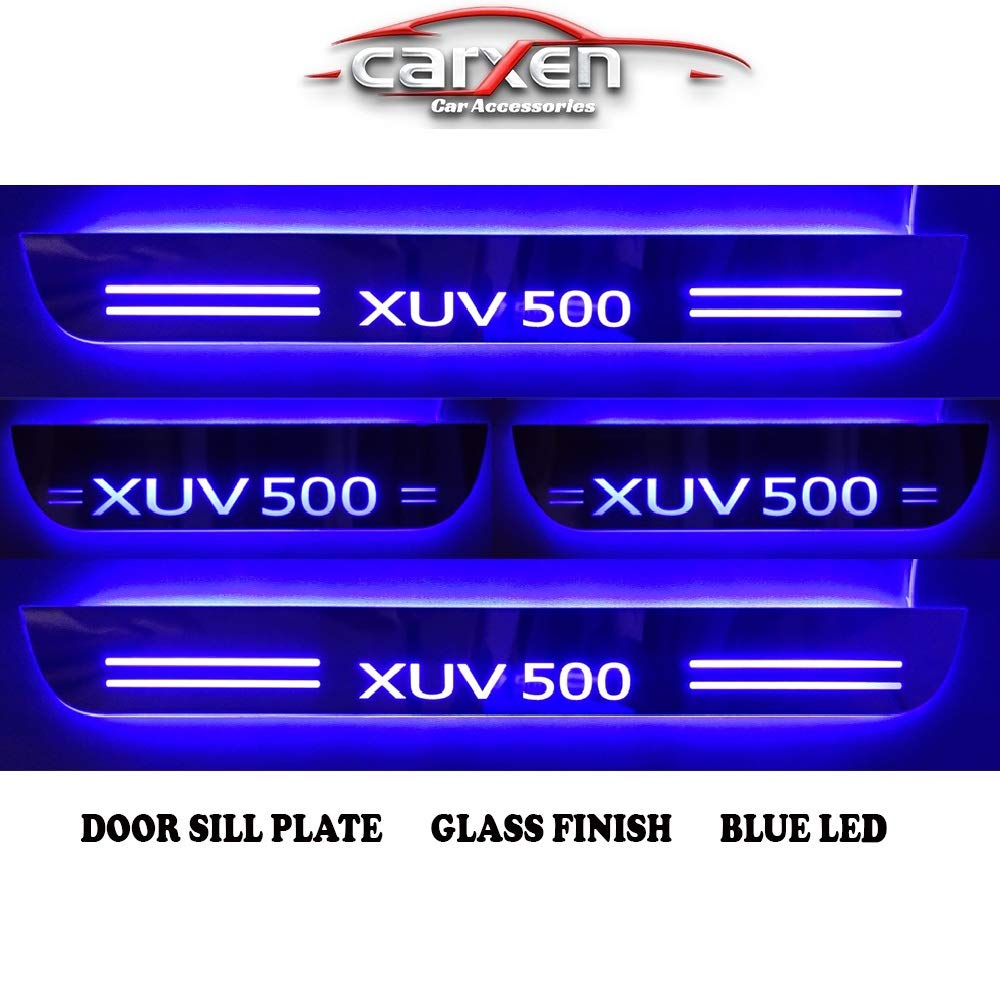 Car Door Foot Step Led Sill Plate With Mirror Finish for compatible with Mahindra XUV500 (Set of 4PCS, Blue) Door Sill Plate Door Sill Plate