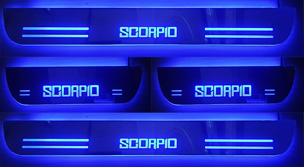 Car Door Foot Step Led Sill Plate With Mirror Finish for compatible with MAHINDRA SCORPIO (Set of 4PCS, Blue) Door Sill Plate