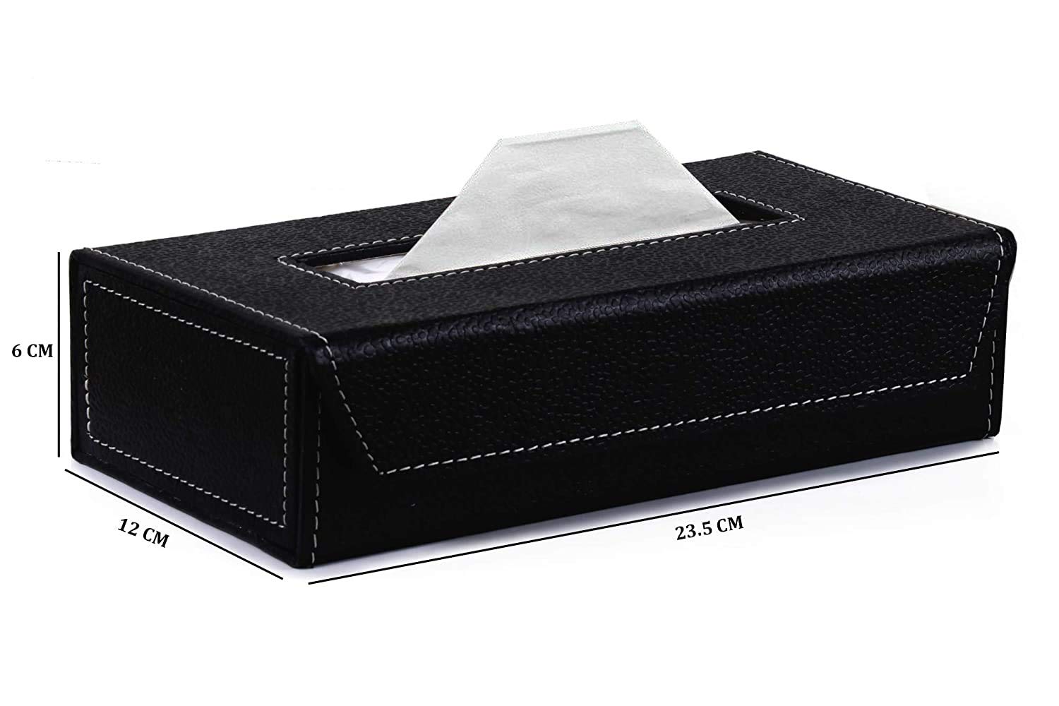 -: This tissue box is made from Vegan leather. Best suited for cars with pre-mium interiors and home decors. Contrast stitch adds more style to your car interiors. For classic interior experience, each time you enter your car favourite this Tissue Box is a must-havey Easy to store and pull tissues. Recommended for your car.