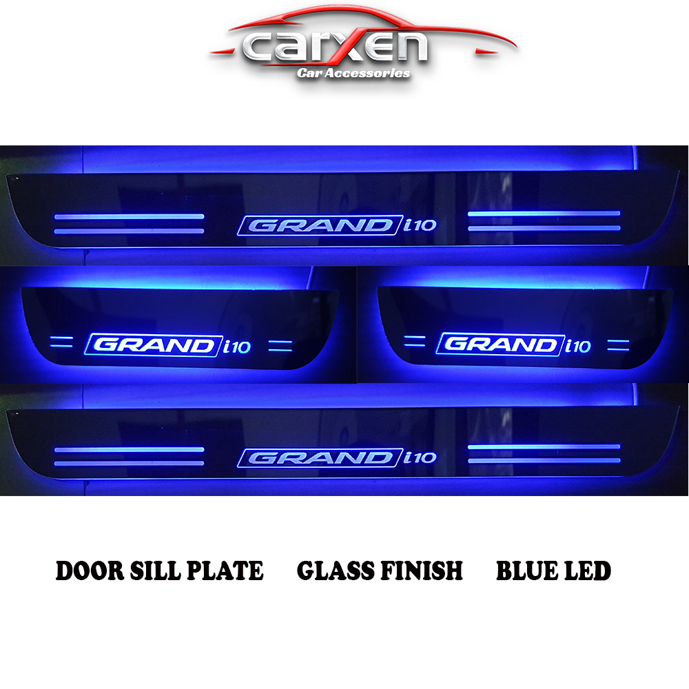 -: • Set of 4 Pcs. 2 pcs FRONT L/R with Blue LED and 2 pcs REAR L/R with Blue LED. • Install them by connecting it to dome light, blue light will automatically light up when door is opened. • Silver Chrome Finish. • 100% Brand New. • Easy and quick installation, comes with automotive adhesive tape. • Door sill plates helps protect the interior door sills from scratches. • Gives your car a new elegant look.