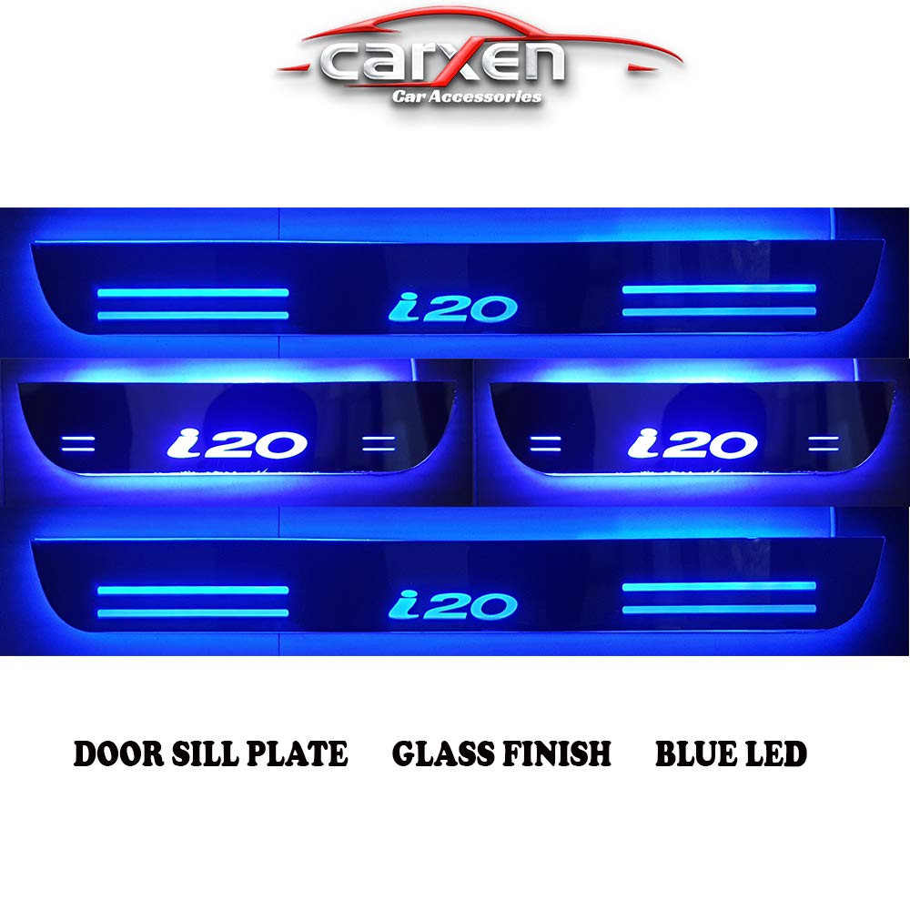 -:• Set of 4 Pcs. 2 pcs FRONT L/R with Blue LED and 2 pcs REAR L/R with Blue LED. • Install them by connecting it to dome light, blue light will automatically light up when door is opened. • Silver Chrome Finish. • 100% Brand New. • Easy and quick installation, comes with automotive adhesive tape. • Door sill plates helps protect the interior door sills from scratches. • Gives your car a new elegant look