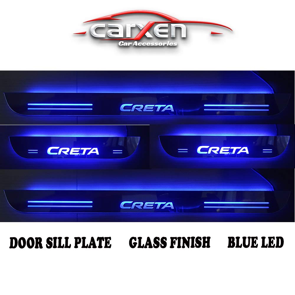 Car Door Foot Step Led Sill Plate With Mirror Finish for compatible with Creta Old (Set of 4PCS, Blue) Door Sill Plate Door Sill Plate