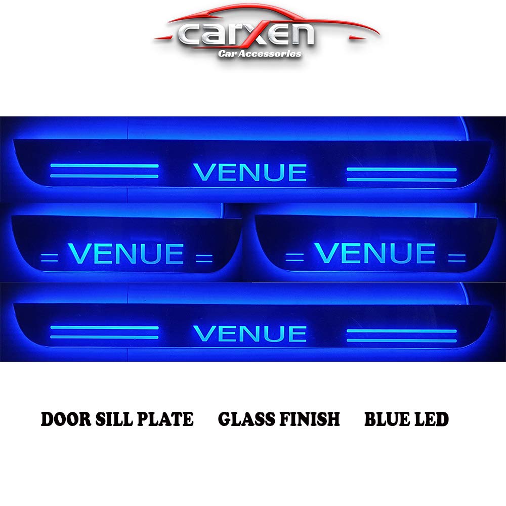 Car Door Foot Step Led Sill Plate With Mirror Finish for compatible with Hyundai Venue (Set of 4PCS, Blue) Door Sill Plate Door Sill Plate