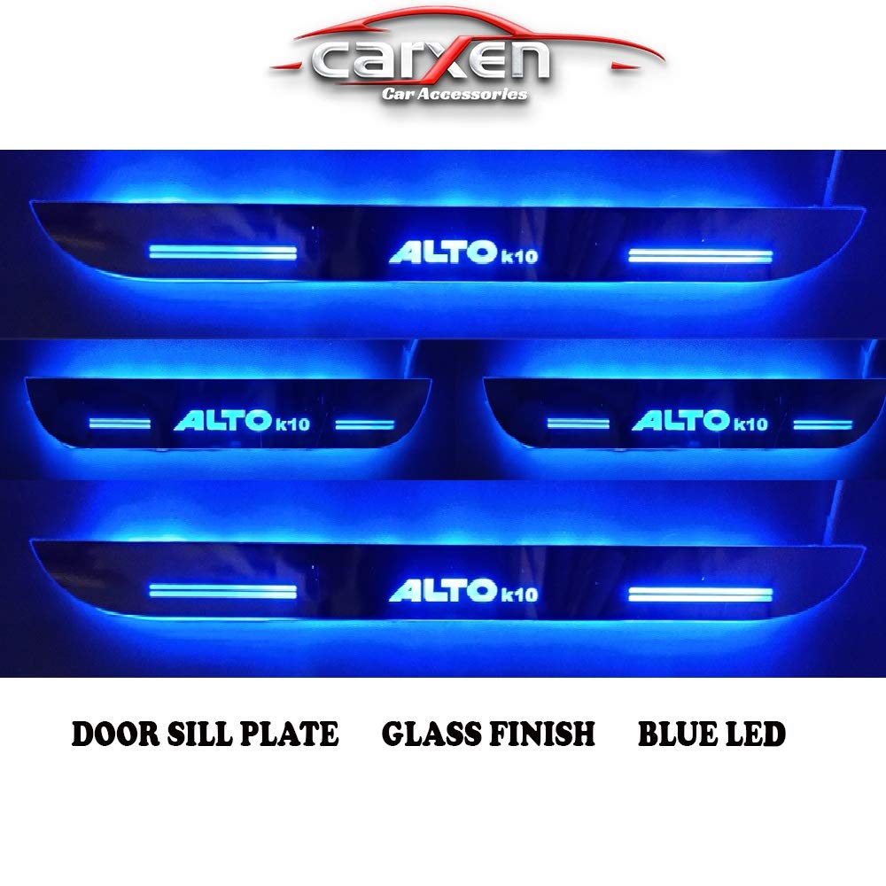 -: Set of 4 Pcs. 2 pcs FRONT L/R with Blue LED and 2 pcs REAR L/R with Blue LED. • Install them by connecting it to dome light, blue light will automatically light up when door is opened. • Silver Chrome Finish. • 100% Brand New. • Easy and quick installation, comes with automotive adhesive tape. • Door sill plates helps protect the interior door sills from scratches. • Gives your car a new elegant look.