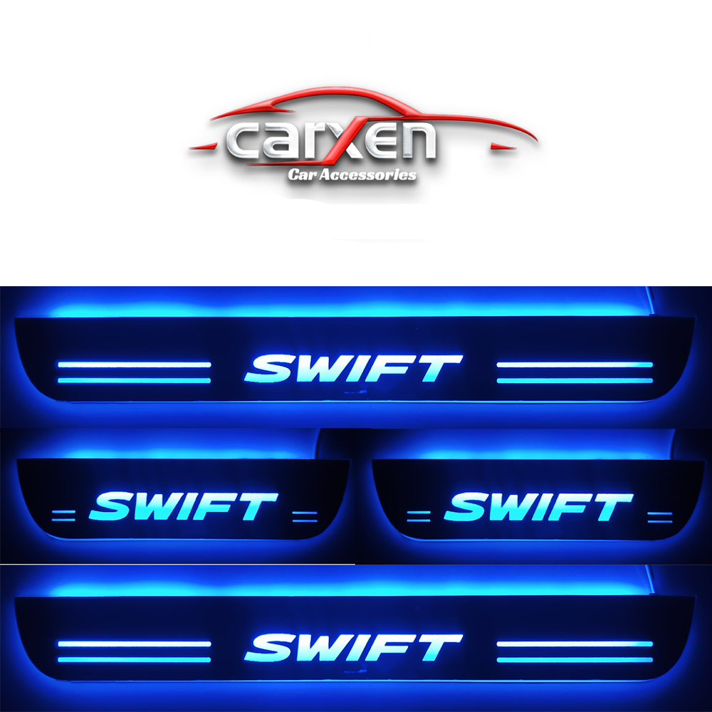 Car Door Foot Step Led Sill Plate With Mirror Finish for compatible with Maruti Swift 2015-18 (Set of 4PCS, Blue) Door Sill Plate Door Sill Plate