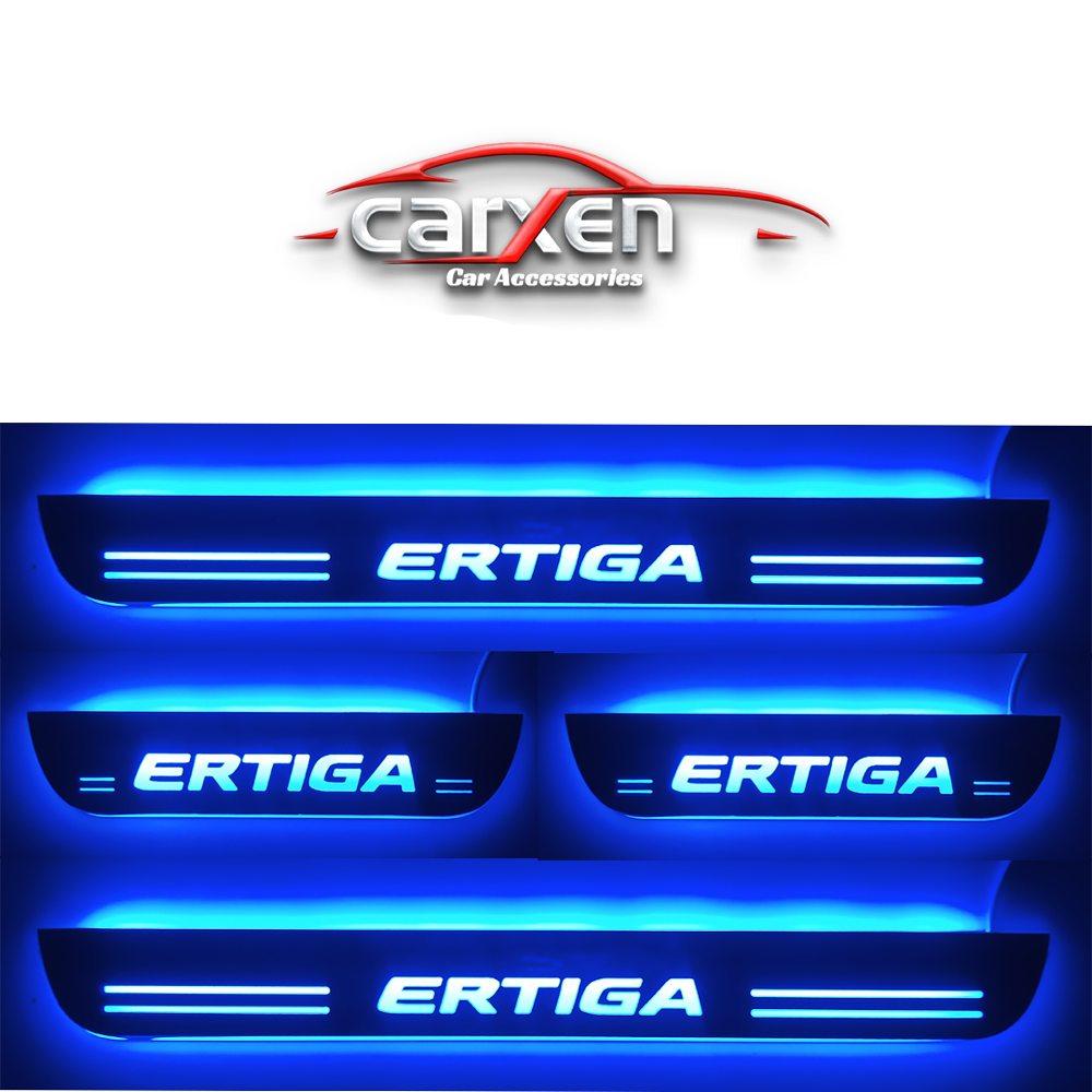 Car Door Foot Step Led Sill/Scuff Plate With Mirror Finish for MARUTI ERTIGA 2018 Onwards (Set of 4Pcs, Blue) Door Sill Plate