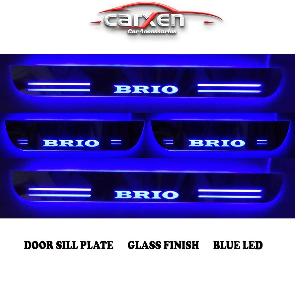 Car Door Foot Step Led Sill Plate With Mirror Finish for compatible with Honda Brio (Set of 4PCS, Blue) Door Sill Plate Door Sill Plate