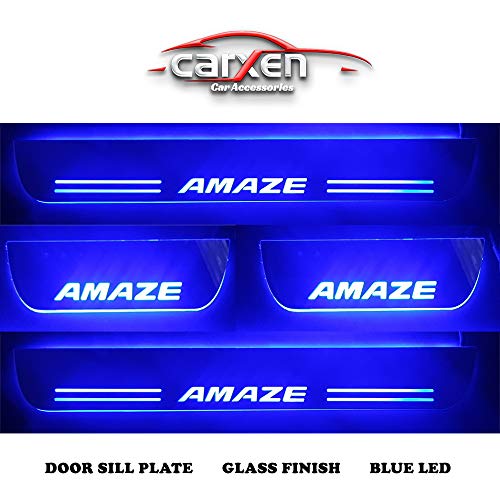 Car Door Foot Step Led Sill/Scuff Plate With Mirror Finish (Set of 4Pcs, Blue) Door Sill Plate