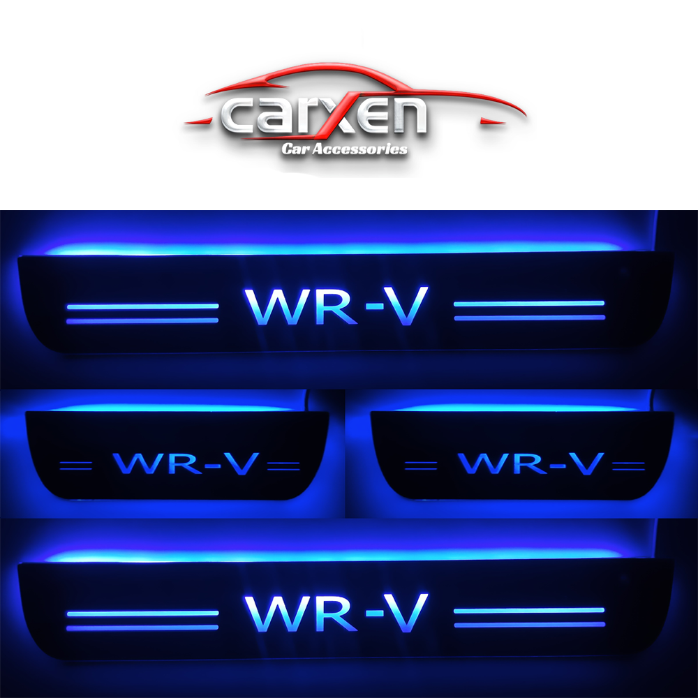 Car Door Foot Step Led Sill Plate With Mirror Finish for Honda WRV (Set of 4Pcs, Blue) Door Sill Plate