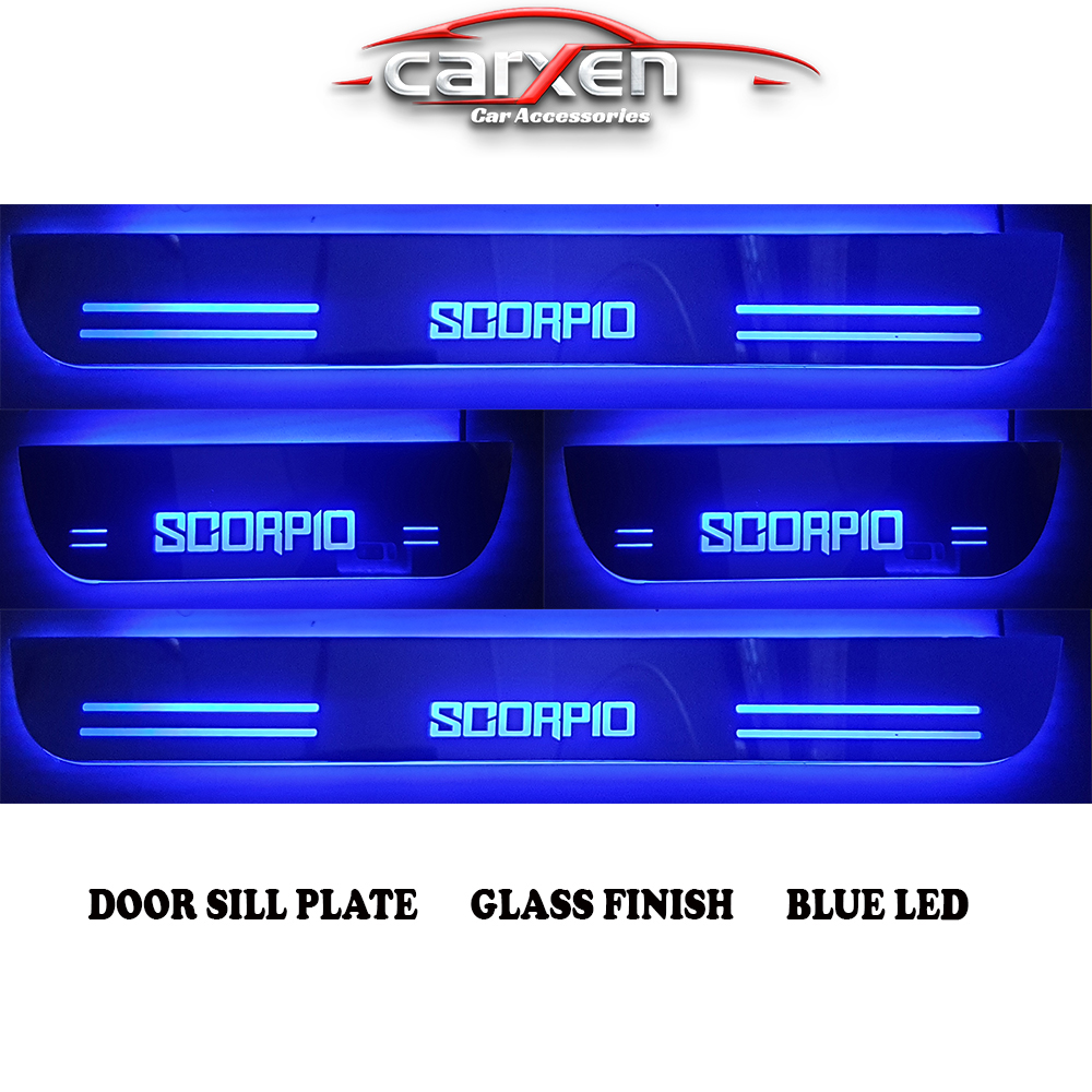 Car Door Foot Step Led Sill Plate With Mirror Finish for compatible with MAHINDRA SCORPIO (Set of 4PCS, Blue) Door Sill Plate