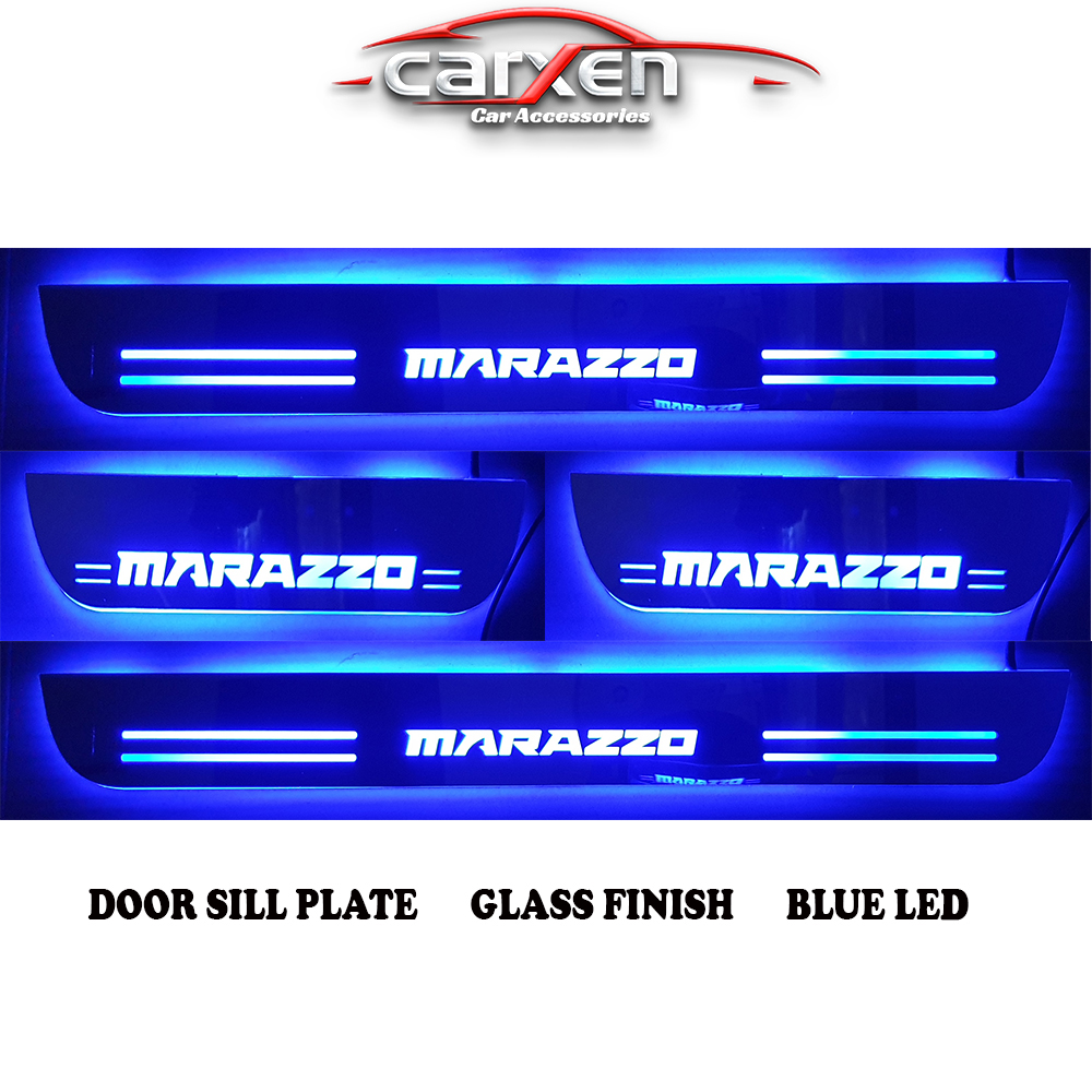 Car Door Foot Step Led Sill Plate With Mirror Finish for compatible with Mahindra Marazzo (Set of 4PCS, Blue) Door Sill Plate Door Sill Plate